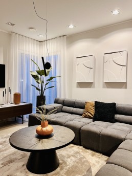 Unsere Leistungen umfassten neben der Farb- und Materialberatung auch die Planung und Umsetzung der Innenausstattung, abgestimmt auf die architektonischen Besonderheiten der Villa. So entstand ein ästhetisch durchdachtes Wohnambiente, das Funktionalität und Design auf höchstem Niveau vereint.